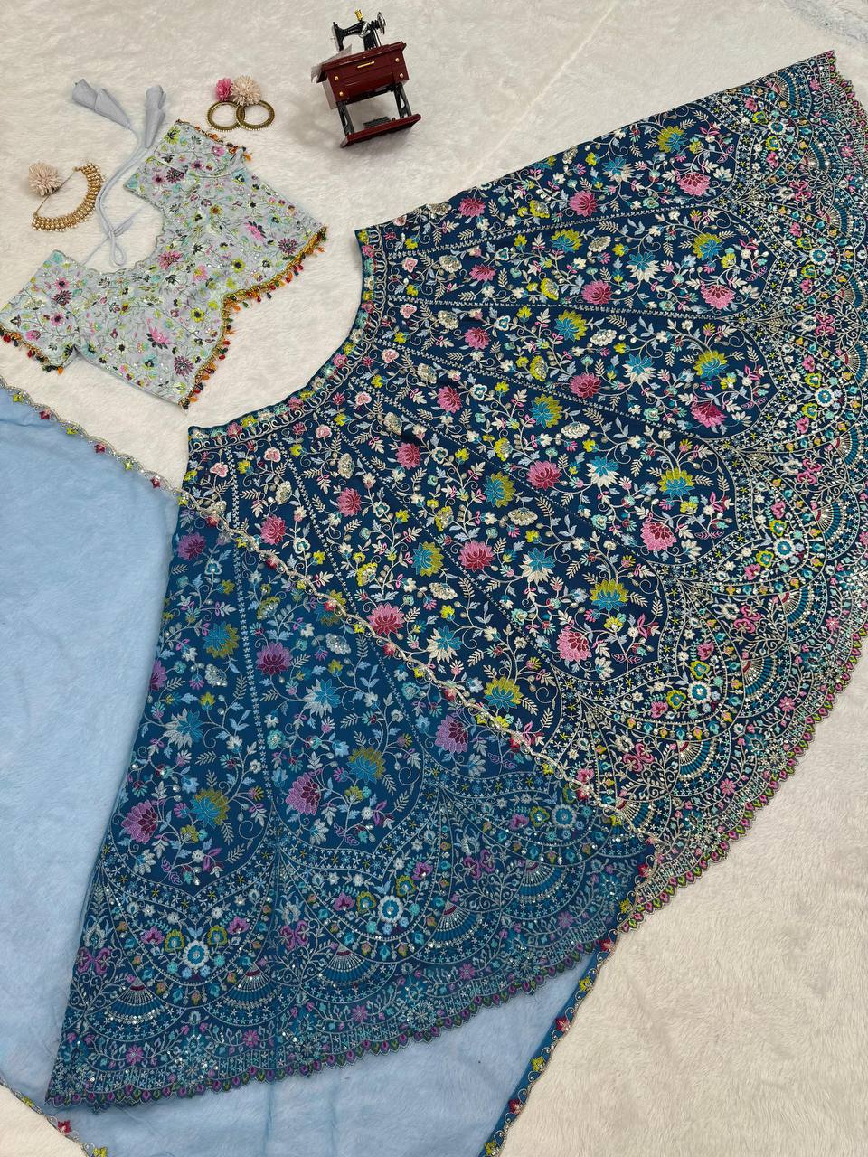 Blue Color Embroidered Sequins Work Designer Heavy Trendy Lehenga Choli
