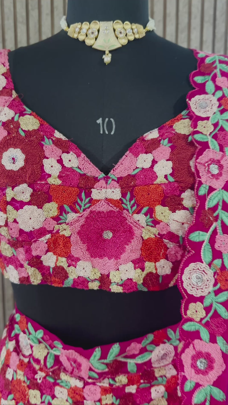 Pink Color Heavy  Chainstich Embroidery Work Lehenga Choli