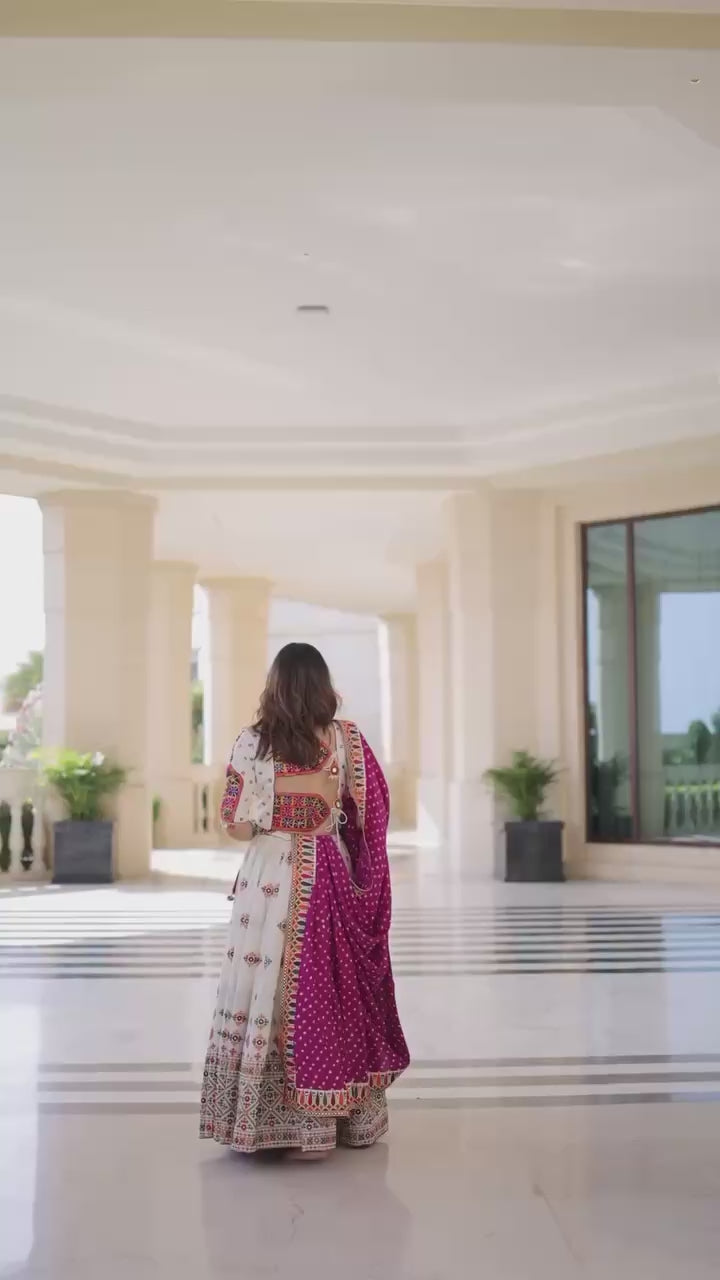 Off White Color Magic Cotton With Digital Print Real Mirror Work Designer Lehenga Choli