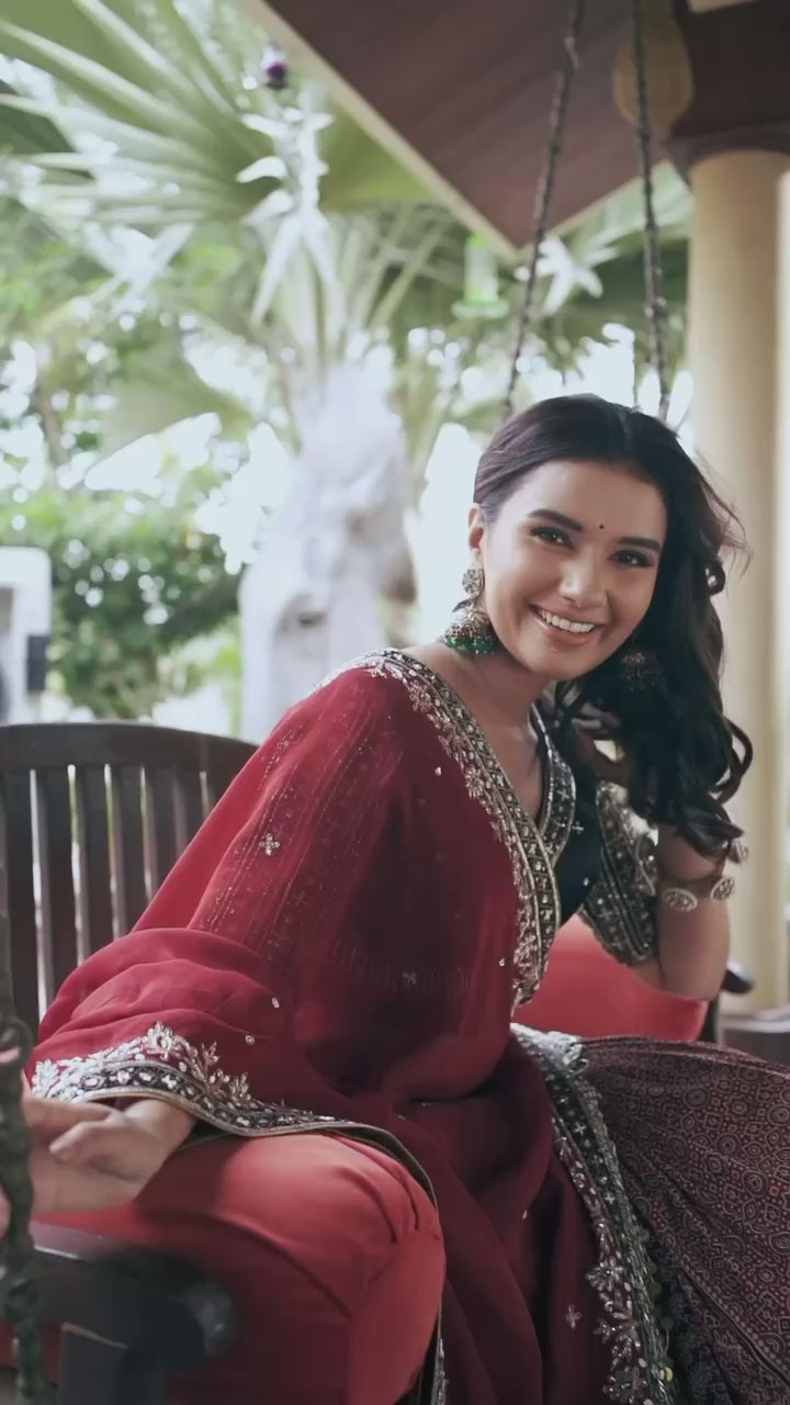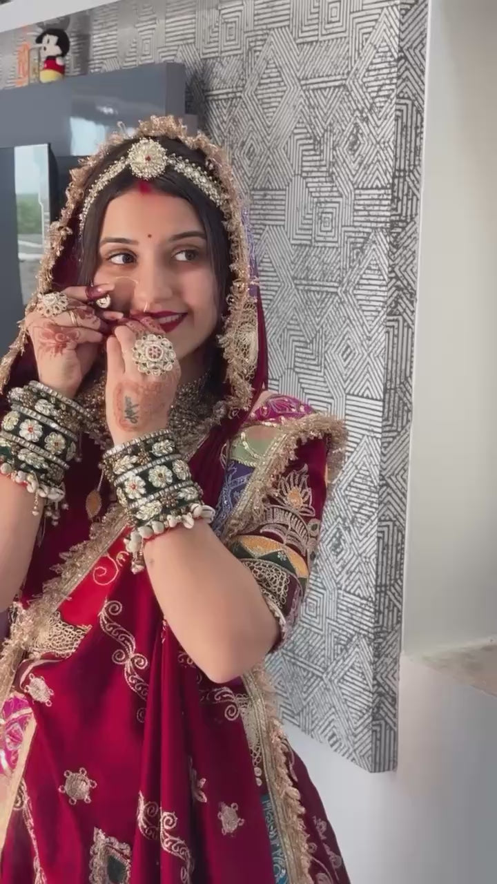 Red Color Muslin With Real Mirror Work Designer Lehenga Choli