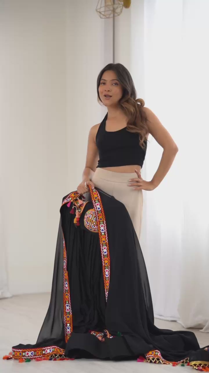 Black Color Navratri Designer Gamthi Work Rady to Wear Lehenga Set