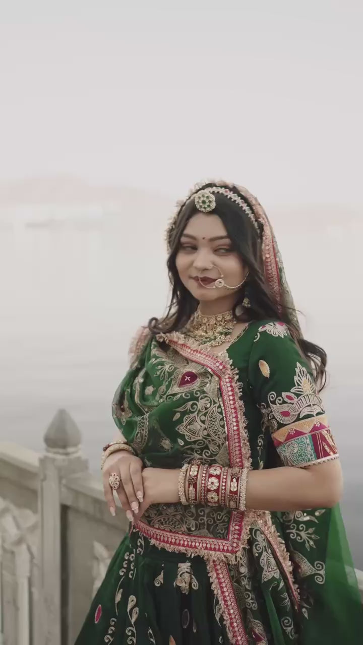 Green Color Digital Print with Mirror Work Designer Navratri Lehenga Choli