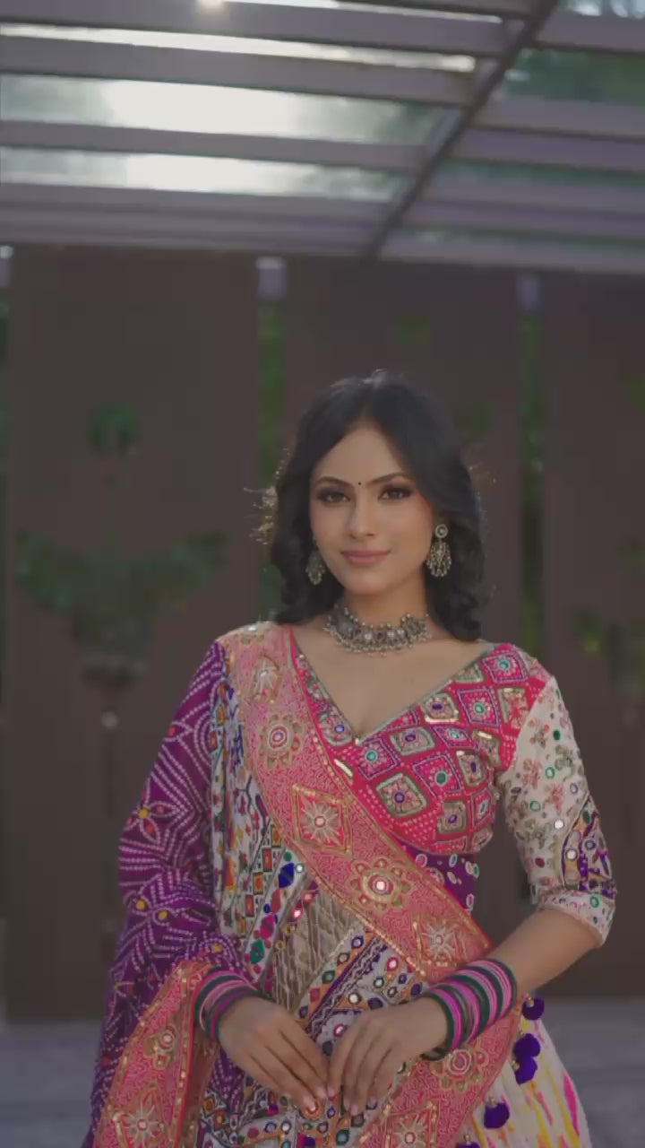 Multi Color Digital Printed with Mirror Work Navratri Chaniya Choli