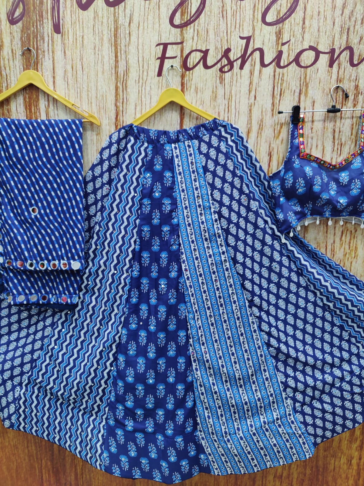 Navy Blue Color Maslin With Printed  Navratri  Special Designer Lehengas - Ahesas