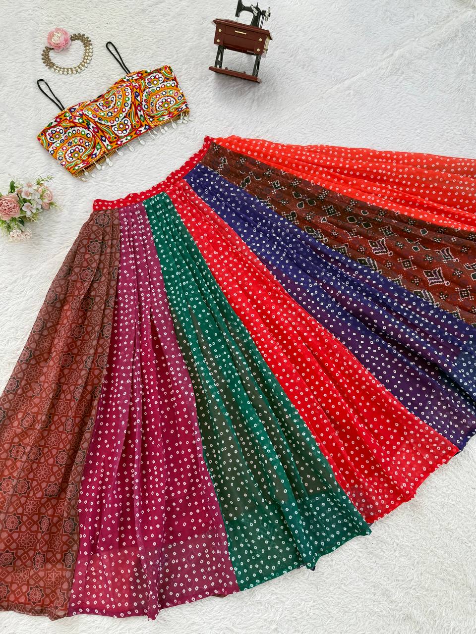 Bandhani Printed Multi Color Navratri Ready to Wear Lehenga Choli