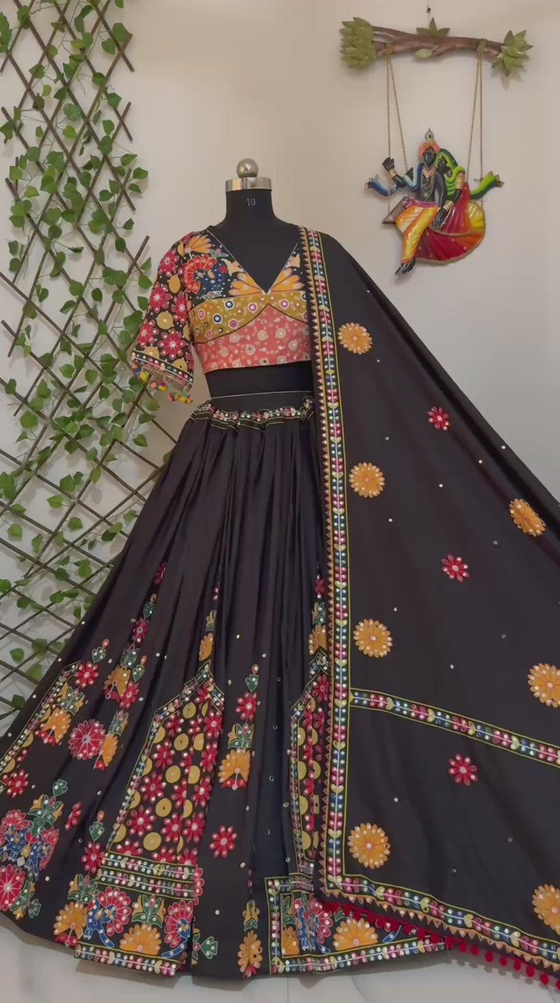 Black Color Digital Printed Mirror Work Navratri Lehenga Choli