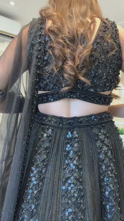 Black Color Heavy Sequence Work Designer Wedding Wear Lehenga Choli