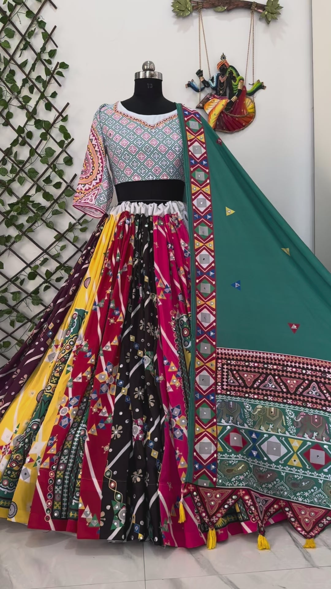 Lehenga Work : Digital Print with Mirror Work