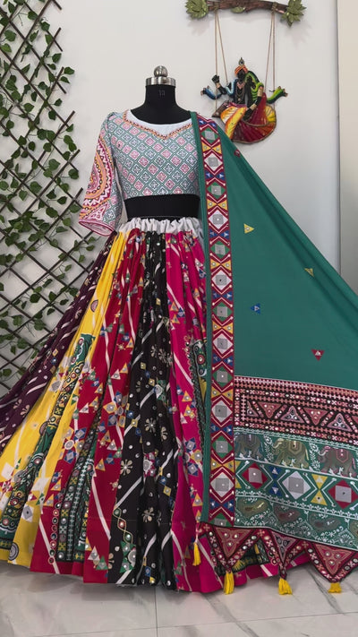 Geeta Rabari Wear Digital Printed Mirror Work Navratri Lehenga Choli