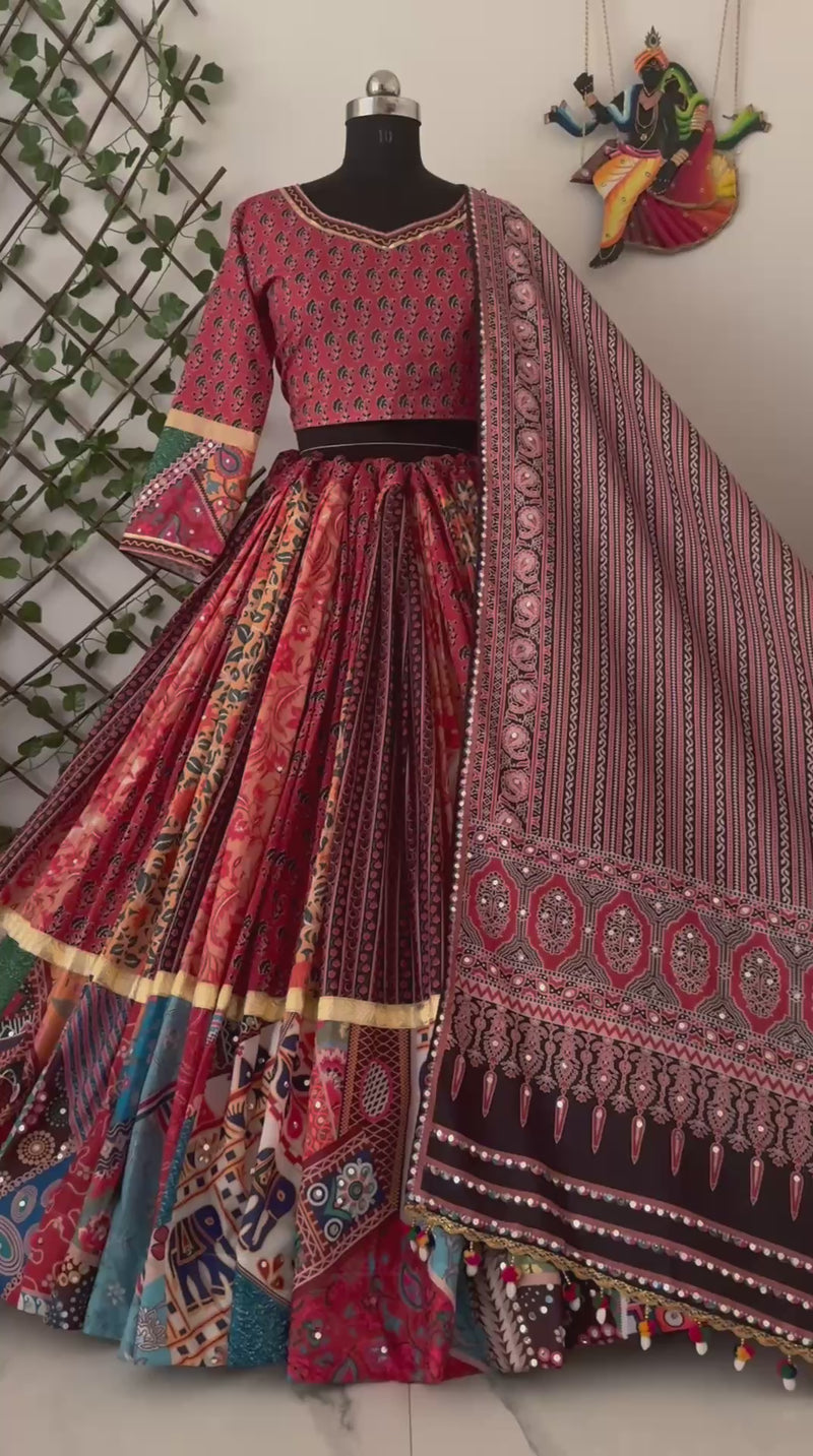 Multi Color Digital Printed Mirror Work Full Flair Navratri Lehenga Choli