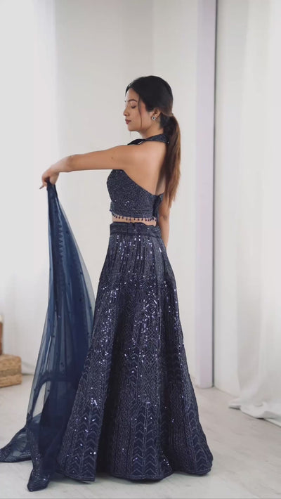 Navy Blue Color Heavy Sequence Work Designer Lehenga Choli