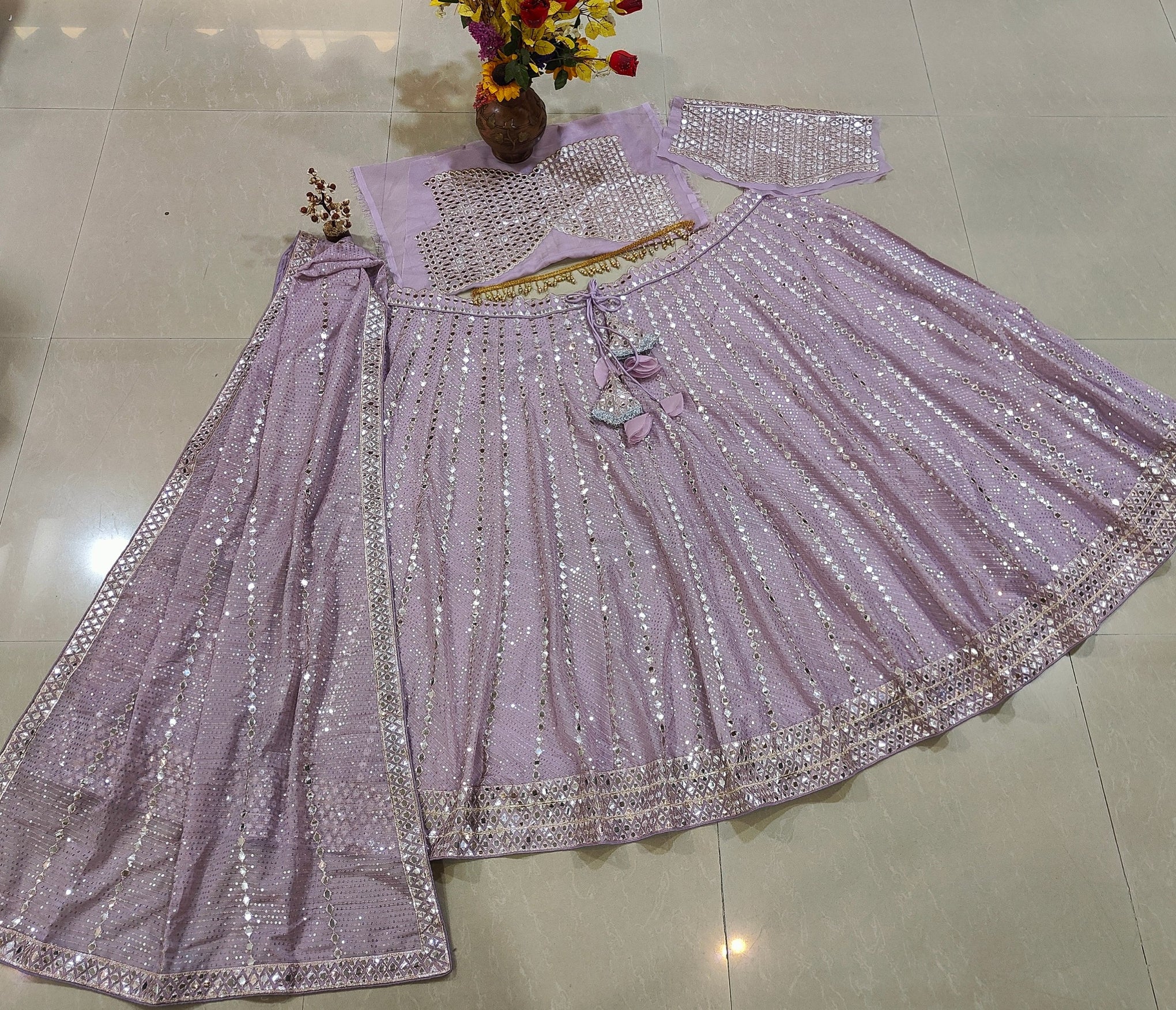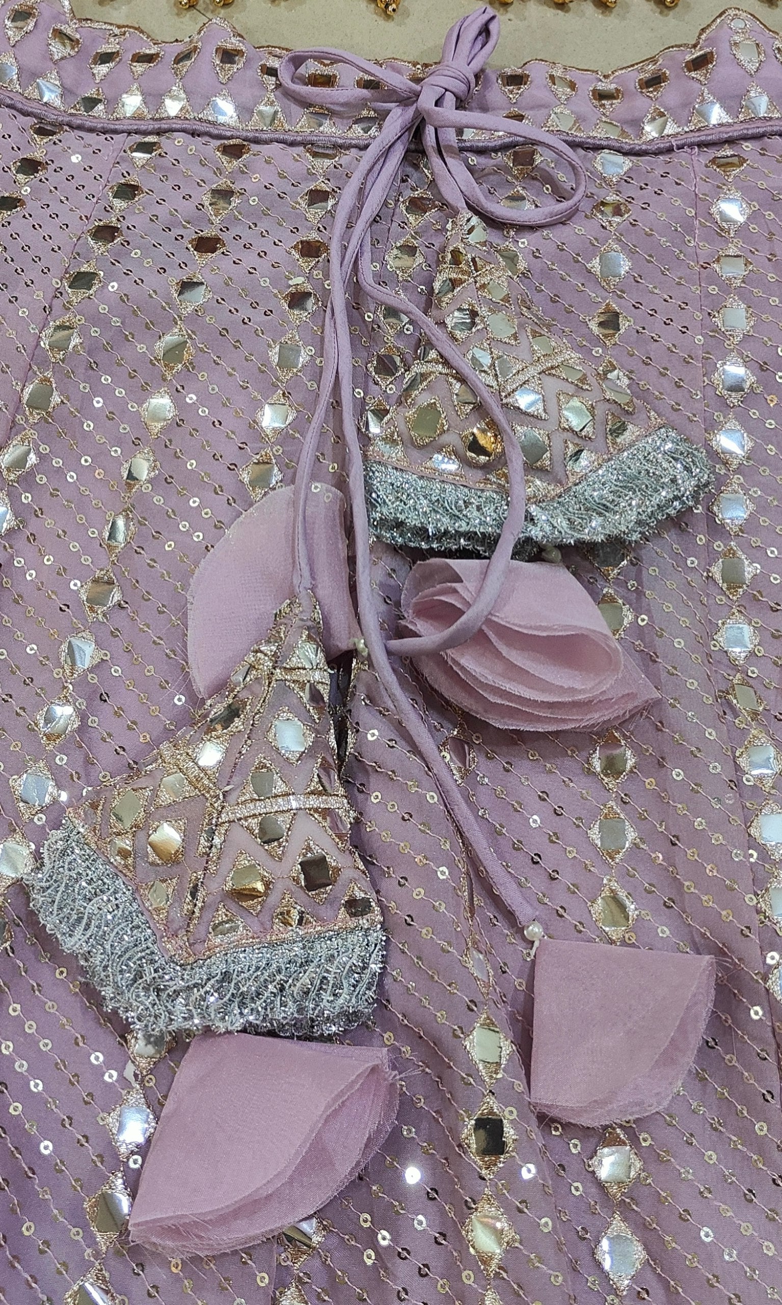 Lehenga Work : Sequence and Pepar Mirror Embroidery Work