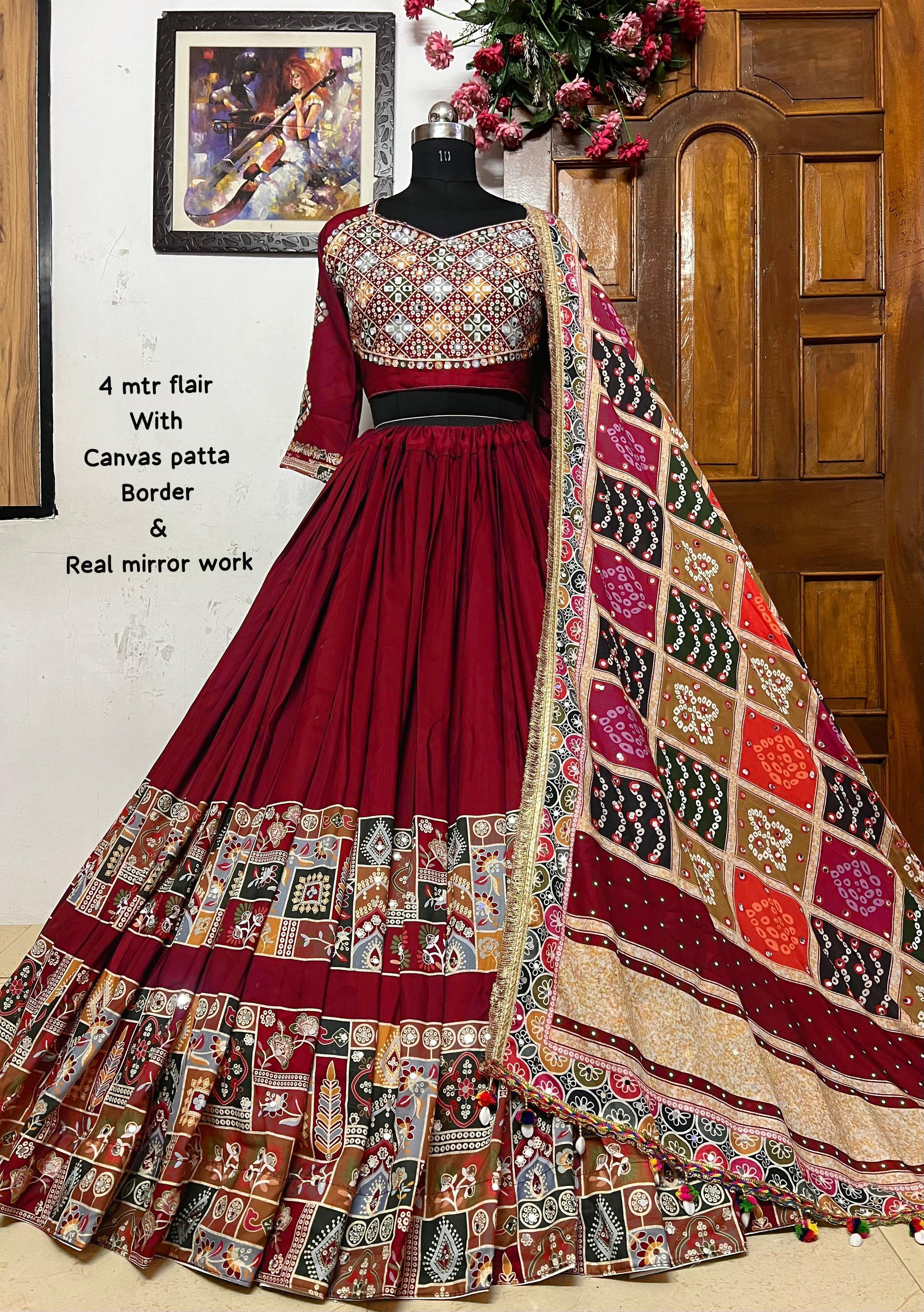 Red Color Mirror Work Digital Printed Lehenga Choli