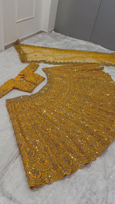 Yellow Color Heavy Sequence Work Designer Haldi Lehenga Choli